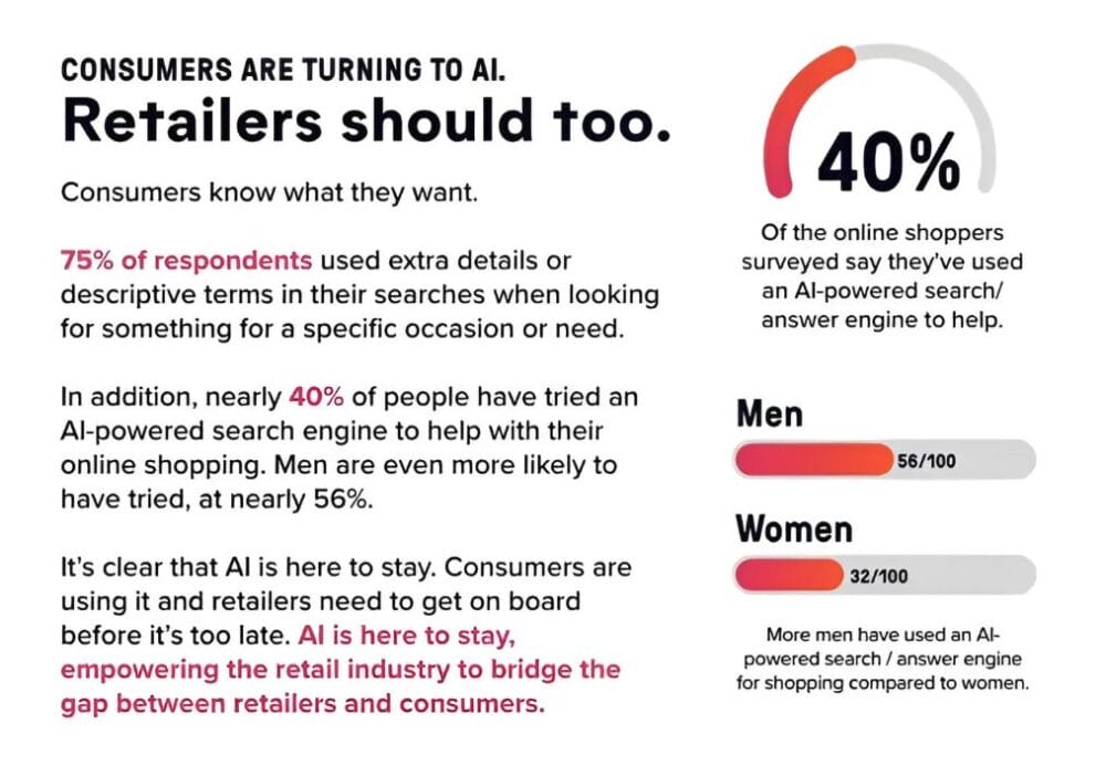 - 4/10 U.S. consumers used AI-powered search for shopping, (Lily AI)