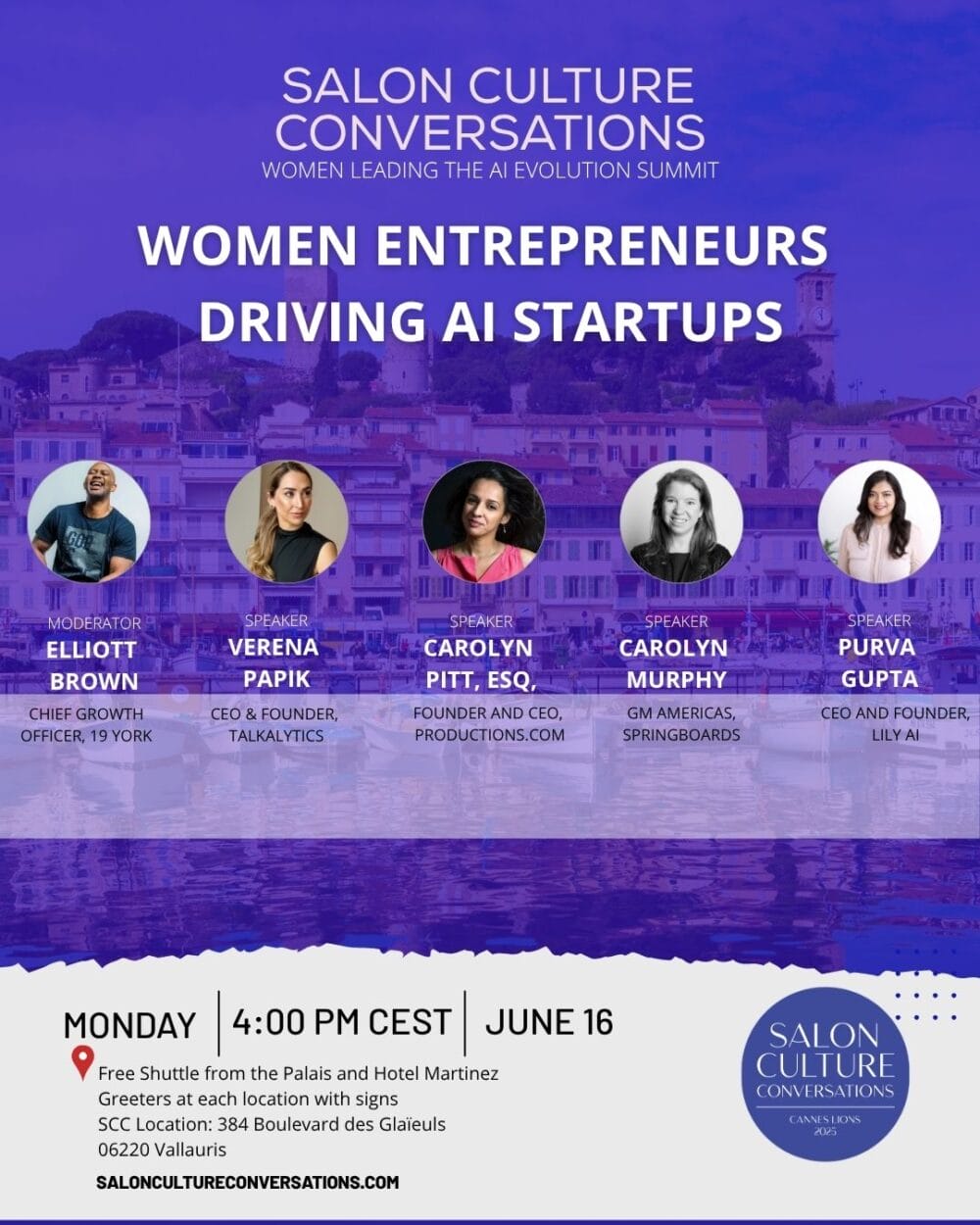 This year, Lily AI Co-Founder and CEO, Purva Gupta, will be speaking at Salon Culture Conversations at Cannes, a premier gathering of industry pioneers, visionaries, and changemakers exploring the cutting edge of creativity, innovation, and cultural impact. For four transformative days, Salon Culture Conversations will bring together executives, scientists, creatives, and cultural architects to have the conversations that shift the industry.
